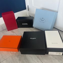 Six shoe boxes with tissue and storage bag.. Gucci , Chanel , Prada, Valentino, Saint Laurent, Hermes. $50 for all$50Fort Lauderdale, FL