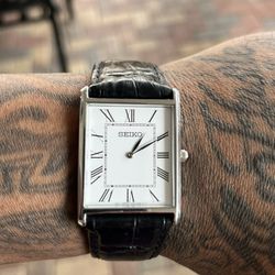 Seiko Essentials White Dial/Black Leather Strap Men's Watch SWR049P1 Tank Japan$140Miami, FL