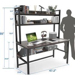 Desk with Hutch Bookshelves, Computer Desk with 3 Tiers Storage Shelves, Space Saving Design Black Metal Legs Desk with Grey Board, Easy Assemb$150Miami, FL