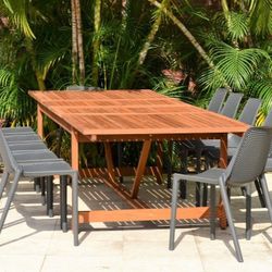 BRAND NEW Rectangular 13pc 100% FSC Solid Hardwood and Gray Resin Dining Set | Ideal Furniture Set For Outdoor