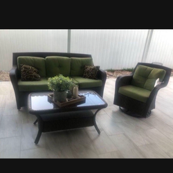 Outdoor Wicker Patio Set Sofa Chair Coffee Table Green Cushions$450Miramar, FL
