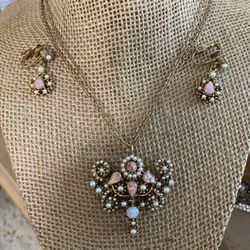 Juego cadena aretes gold filled piedras perlas joyería antigua$25Miami, FL