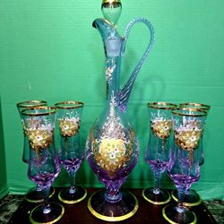 Vintage Venetian Murano Purple Neodymium Color Change Glass Decanter Set w/6 Cordial $177Boca Raton, FL