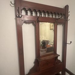 Antique Oak Hall Tree w Mirror Storage Bench Art Deco Entryway Piece$325Miami, FL