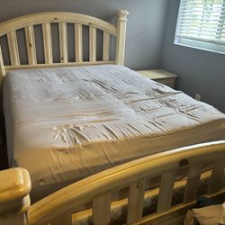 QUEEN Bed Frame-Light (natural) Wood With Natural Wood Markings, And 1 Matching Bedside Table $50Hollywood, FL