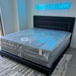 New KING SIZE Bed Frame With Mattress And Box Springs Set Free Delivery Black BedFrame $499Miami, FL