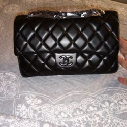 Designer’s Black Leather Bag With Logo 8.5”-6”-3” Crossbody. Very good condition, minimal wearing marks.$50Boca Raton, FL