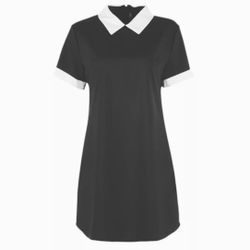 Shein, dress is a shift style (straight) or tunic in black, characterized by its mandarin collar with a "V" neckline and puff sleeves with elastic cuf$20Miami, FL