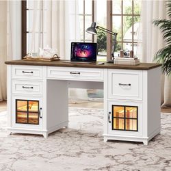 OKD 60" Executive Desk with Drawers, Farmhouse Home Office Desk with Charging Station, Keyboard Tray, File Cabinet Storage, Wood Computer Desk for Wor$190Fort Lauderdale, FL