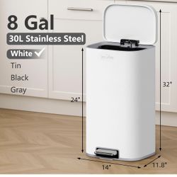 NEW - 8 Gal Kitchen Trash Can, Step Trash Can with Lid, Smooth Edge Garbage Bin for Home Office (White)$50Fort Lauderdale, FL