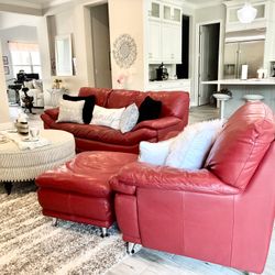 Couch Living Room Two piece Set Red Italian Leather And Aluminum Legs$1,250Miami, FL
