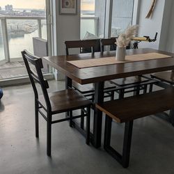 6- seat industrial wood table with chairs and bench$375Miami, FL