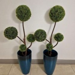 *** REDUCED *** PAIR of 46" Faux 3-Ball Boxwood Topiaries in 12" Blue Circle Planters @ Lasting Creations$90Oakland Park, FL