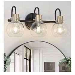 3 Lights Bathroom Light, Black Gold Vanity Light Fixture, Wall Sconces with Globe Clear Glass Shade, Farmhouse Wall Mount Lamp for Mirror, Kitchen, Po$30Boca Raton, FL