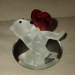 Valentine SMALL 2 inch crystal glass bear holding red heart on mirror base figurine $3 FIRM$3Boca Raton, FL