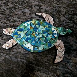 Mosaic Turtle Wall Decor featuring shades of blue mosaic tiles and reflective mirror pieces 14"ร11"$23Boca Raton, FL