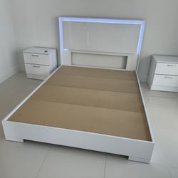 Queen Size Bed Frame WHITE SOFT UPHOLSTERY // Mattress Sold Separately $199Miami, FL