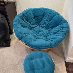 Pier 1 Papasan chair featuring a natural rattan frame and a tufted plush teal cushion & Ottoman $125Fort Lauderdale, FL