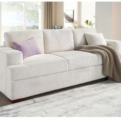 89in Comfy Couch, 3 Seater Sofa Deep Seat Sofa- White Corduroy Modern Couch for Living Room $299Miami Gardens, FL