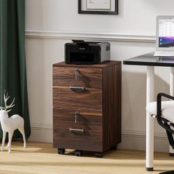 VINGLI 2 Drawer File Cabinet with Lock, Wood Dark Brown File Cabinet for Letter Size File Folders with Tabs, Under Desk Rolling File$60Pompano Beach, FL