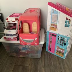 All for $50! Barbie camper, ambulance, townhoyse and box full of barbies, furniture and accessories$50Pembroke Pines, FL
