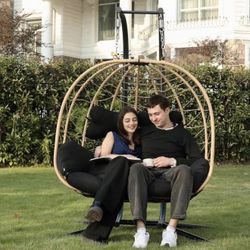 Double Wicker Swing Egg Chair Hammock Foldable Hanging Loveseat with Stand, UV Resistant Removable C$180Oakland Park, FL