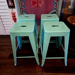 Set of 4 Teal Industrial-style backless metal counter height stool 12"×24" $189Boca Raton, FL