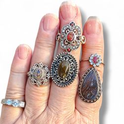 Lot Of 6 Sterling Silver Gemstone Rings $120Pompano Beach, FL