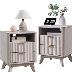 NEW- Nightstand Set of 2 with Charging Station, 18" Modern Side Table with 2 Drawer, End Table w/Storage, Bedside for Bedroom, Living Room, Curved Pro$180Oakland Park, FL