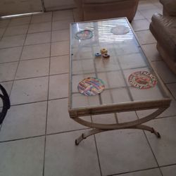 Iron base & glass coffee table- has a tiny chip on under the glass. 60 “ wide , 33” depth , 18 “$60Fort Lauderdale, FL