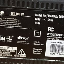Hisense 50 Inch TV With Wall Mount$100Pembroke Pines, FL