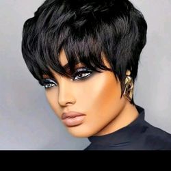 100% Brazilian Remy Human Hair Pixie Cut Wig For Women - Glueless Short Bob With Bangs, Layered Straight Hair, 180% Density, Rose Cap, Machine Made, U$30Ocala, FL
