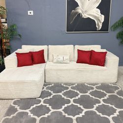 Nice Beige Corduroy Boneless Two Piece Sectional Couch - Delivery Available$395Ocala, FL
