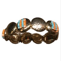 Orange & Teal Seed Beads Beaded Stretch Gold Tone Bracelet Resort Wear$20Belleview, FL