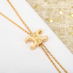 Bee & Heart Rhinestone gems two strand pendant necklace gold tone chains $30Ocala, FL