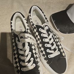 MUDD 8.5 Checkered White BlackTennis Shoes With Matching Cowhide Like Hat With Diamond Accents$25Belleview, FL