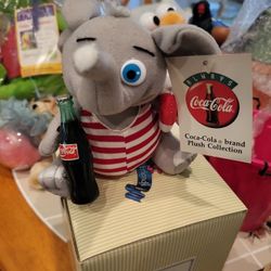 NEW Vintage 1993 COCA COLA 10" PLUSH ELEPHANT With Coke Bottle Play by Play Tags