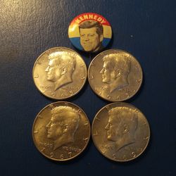 Silver Kennedy Half Dollars And Campaign Pin$60Ocala, FL