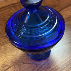 Vintage BLUE GLASS Candy Dish Gold Design$10Summerfield, FL