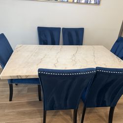 Beautiful Marble Dining Table Set with 4 Blue Velvet Chairs โ Elegant & Modern$650Summerfield, FL