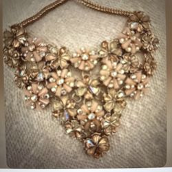 GLITZY PEACHY CRYSTAL ACCENTS FLORAL NECKLACE$29The Villages, FL