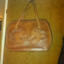Vintage Tooled Leather Bag Purse W/Leather Flower Keychain Charm~M.L.C. $25Citrus Hills, FL
