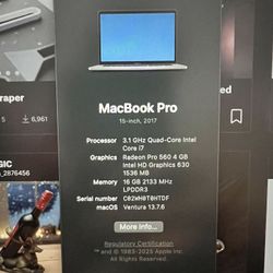 MacBook Pro 15” (2015) – i7 / 16GB RAM / 2TB SSD – $600 OBO Works Perfectly – Touch Bar Model A1707 – Silver$600Inverness, FL