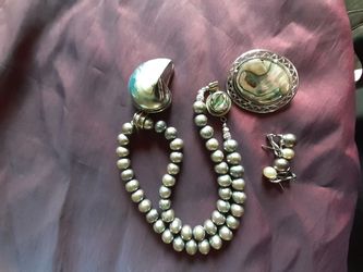 Sterling Silver Pearl and Abalone necklace, pin and earrings set$275Ocala, FL