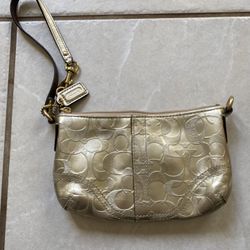 Coach Wristlet Signature Monogram Logo Print Jacquard Tan with Gold$25Dunnellon, FL