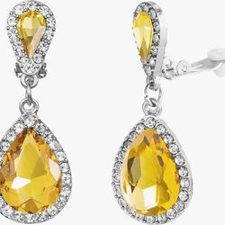 Classic Austrian Crystal Tear Drop Clip on Dangle Earrings for Women Girl$10Hialeah, FL