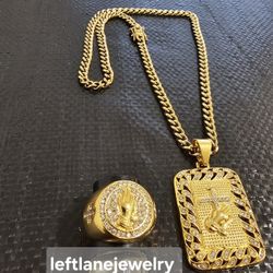 I Deliver I Ship 14k Gold Plated 2 Chains Pendant And Ring$240Hollywood, FL