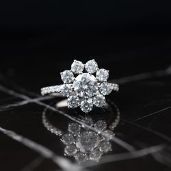 14K Yellow Gold Cluster Engagement Ring – 2.00ct Diamonds, 8.4g, Size 6.5 $3,000Hollywood, FL
