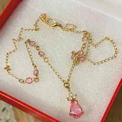 Cadena Laminada Piedras Rosa Joyería Antigua $15Hialeah, FL