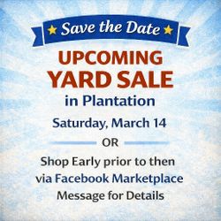 SAVE THE DATE - YARD SALE Saturday March 14 in Plantation or Shop Listings now until then$100Fort Lauderdale, FL